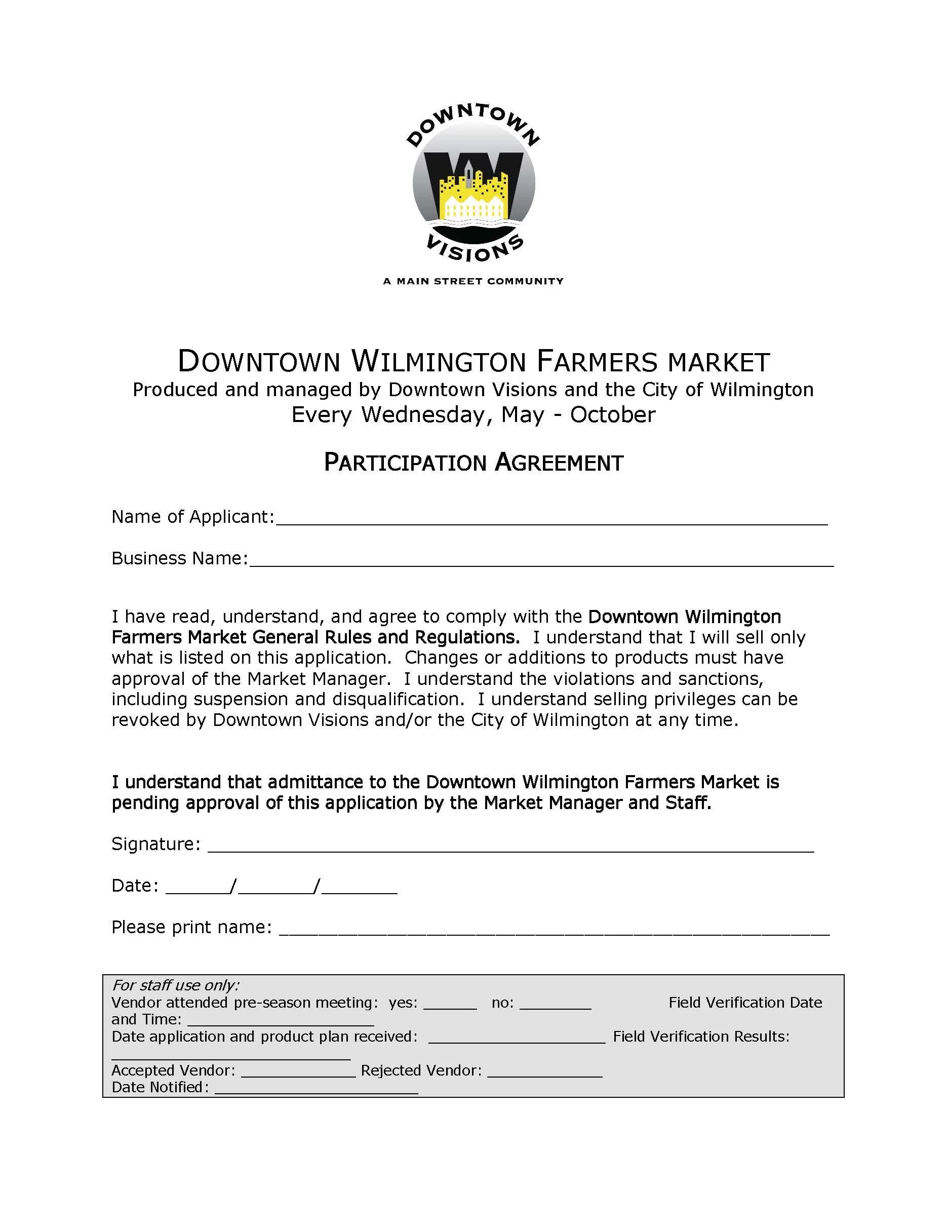 Downtown Visions shall enforce all Market Rules and Regulations. Permission to participate in the Downtown Wilmington Farmers Market (DWFM) can be revoked by Downtown Visions and/or the City of Wilmington at any time. These rules are mandatory for all farmers, food vendors and artisans (collectively called vendors) participating in the DWFM and are part of the agreement for participants.